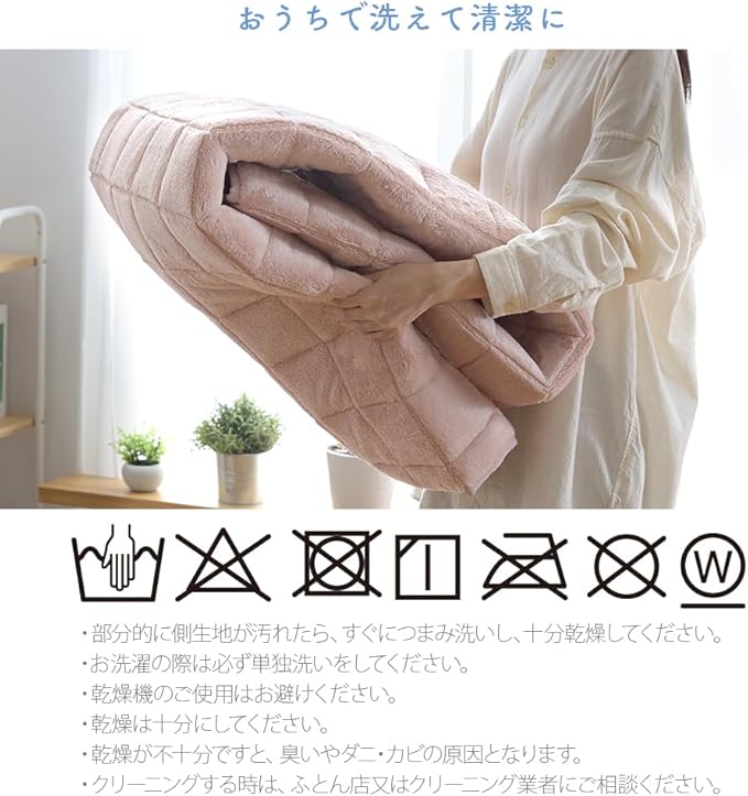 材質 表:毛羽部分:ポリエステル100%(フランネル長毛マイクロ330g/m2) グランド部分:ポリエステル100% 中綿:ポリエステル100%吸湿発熱綿 洗えるウレタン20D 10mm 裏:不織布滑り止め付き