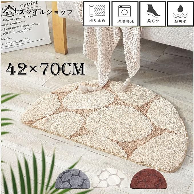 玄関マット 屋内 室内 洗える 半円形 北欧 42x70cm ホワイト カーペット ラグマットお風呂マット バスマット 浴室マット 泥落とし 吸水 速乾 ふわふわ 滑り止め 抗菌消臭 かわいい おしゃれ
