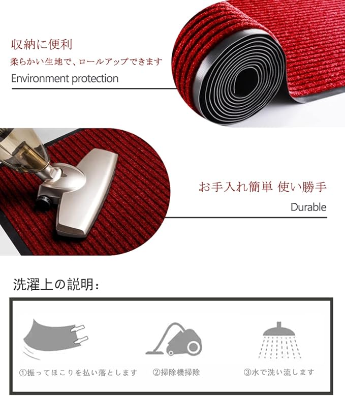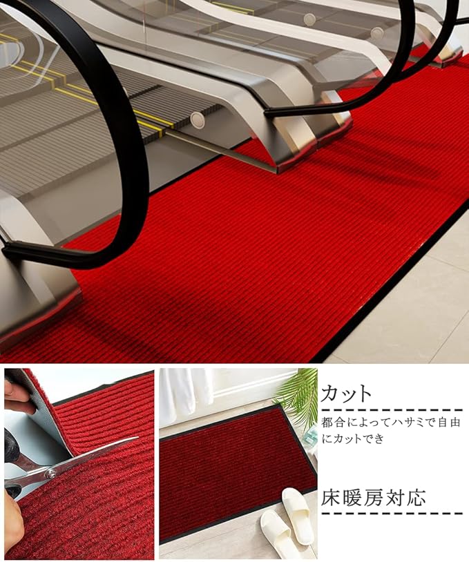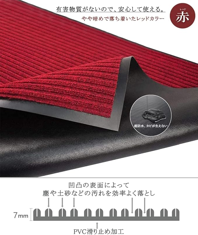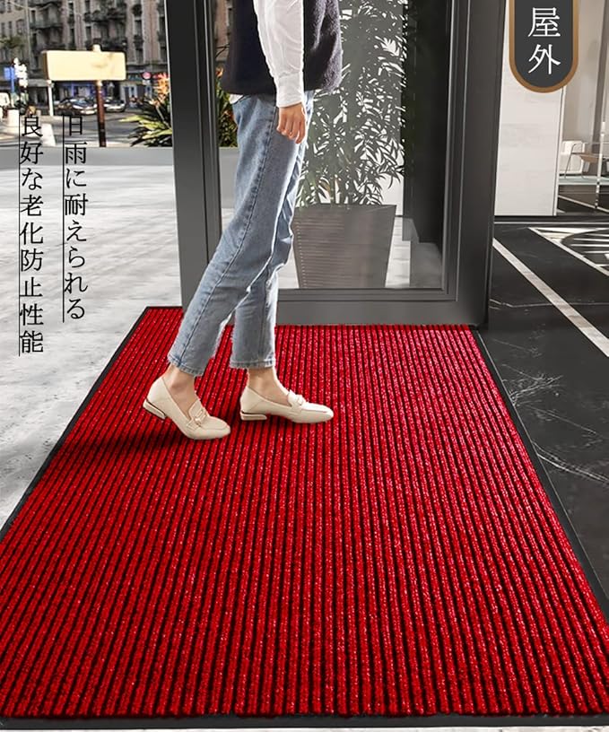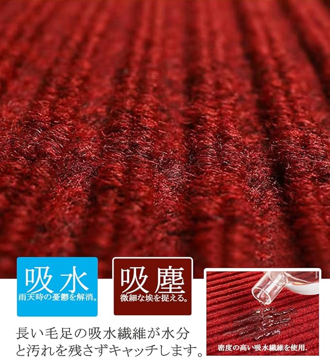 [Bcrio]玄関マット 屋外 大判 室内 滑り止め 業務用 家庭用 吸水 泥落とし エントランスマット オフィス お店(レッド40*60)