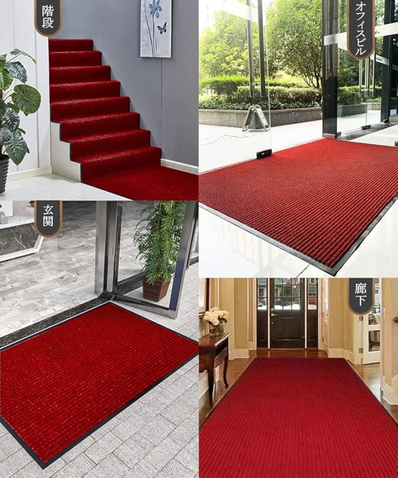 【適用範囲が広い】多用途マットです!ドアマット、階段マット、廊下マット、 玄関マット、キッチンマットなどのインテリアマット等、様々な使い道でご利用いただけます。飲食店や美容院、企業、オフィス、会社、ビル、学校、幼稚園、保育園、店舗、病院、公共施設、レジャー施設といった店舗など、業務用として最適です