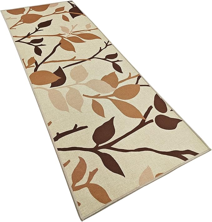 キッチンマット台所マット玄関マット廊下敷きマット防音マット ラグ 足ふきマット床保護マット滑り止め防水丸洗い洗える防臭防ダニ段階マットペットマット おしゃれ45X120CM 45X180CM 45X240CM (120X45, ブラウンリーフ)