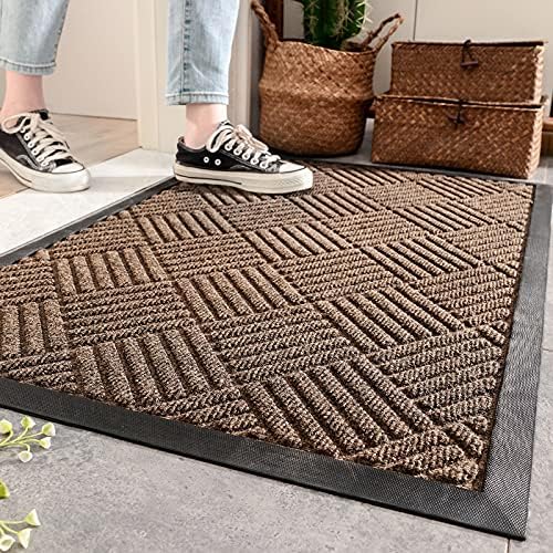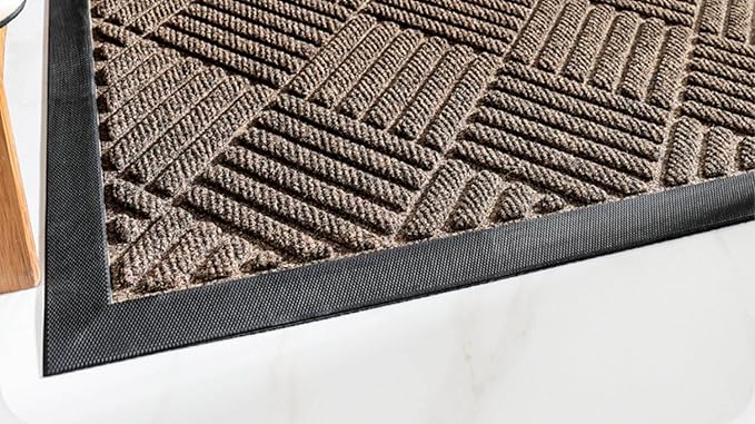 CHICHIC玄関マット 屋外 泥落とし 滑り止め 吸水 店舗用玄関マット 業務用 家庭用 約45 75㎝ ブラウン 菱模様03