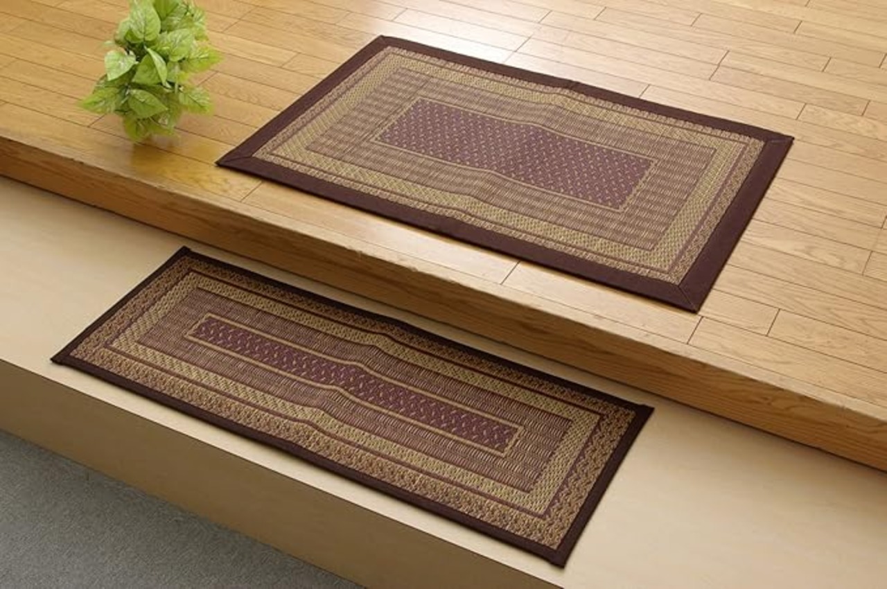 純国産 い草玄関マット 『Fランクス 上がり框』 ワイン 約35 90cm(裏:ウレタン)