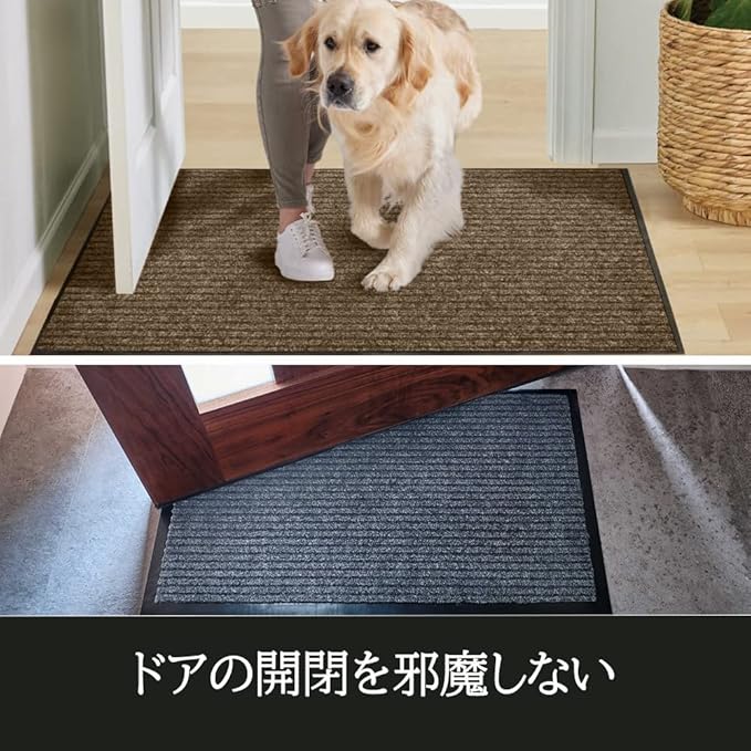 CHICHIC玄関マット 屋外 泥落とし 滑り止め 吸水 店舗用玄関マット 業務用 約60 90㎝ ブラウン03