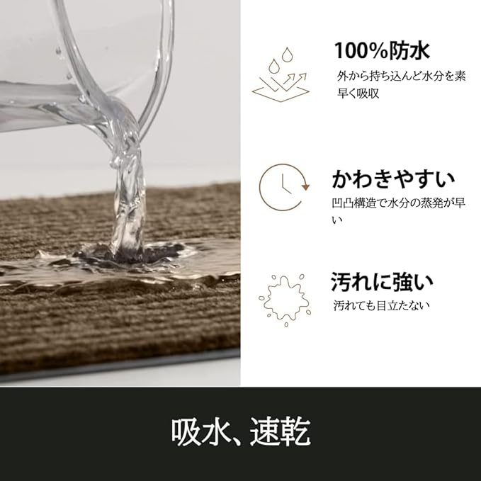 【泥落とし、吸水仕様】凹凸構造で靴裏についているごみと水分を効率的にとる。
