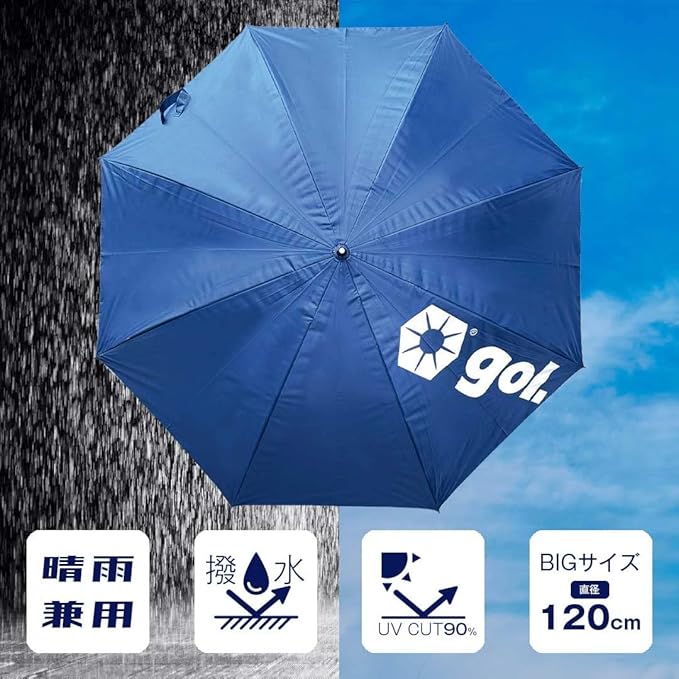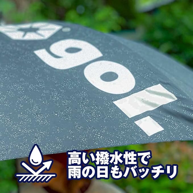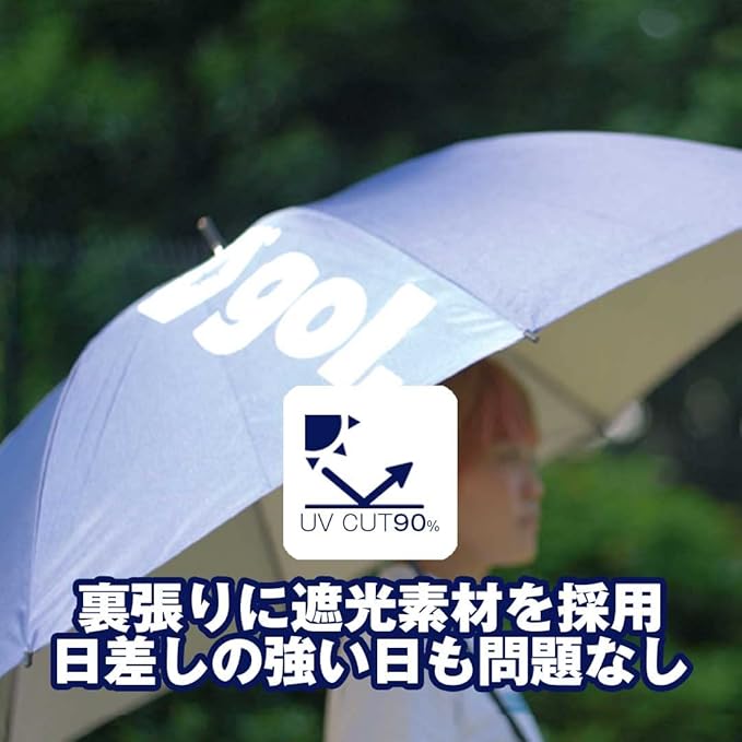 露先だけをまとめて、かさばるのを防ぐ玉留めキャップ付き‹br›雨の日での使用はもちろん裏張りに遮光素材を使用し日差しの強い日のスポーツ観戦でも使える晴雨兼用のフルタイムUVアンブレラ‹br›ロゴ部分はプリント仕様‹br›全長:90cm 直径:120cm 親骨長:70cm