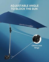【角度調整式パラソル — どこでも使える万能シェード】 「360度回転+角度調整」可能なシェード設計で太陽の向きに合わせて自在に角度調整可能。UPF50+の紫外線カット生地が、強い日差しからしっかりガード。ビーチやキャンプはもちろん、お子様のスポーツ観戦やベビーカー・カートなどに簡単に取り付けられ、どんなアウトドアシーンでも快適に強い日差しからあなたを守ります。手軽に持ち運べる軽量設計で付属品の収納ケースにコンパクトに収納が可能なので、日常使いから旅行用など様々なシーンに対応可能