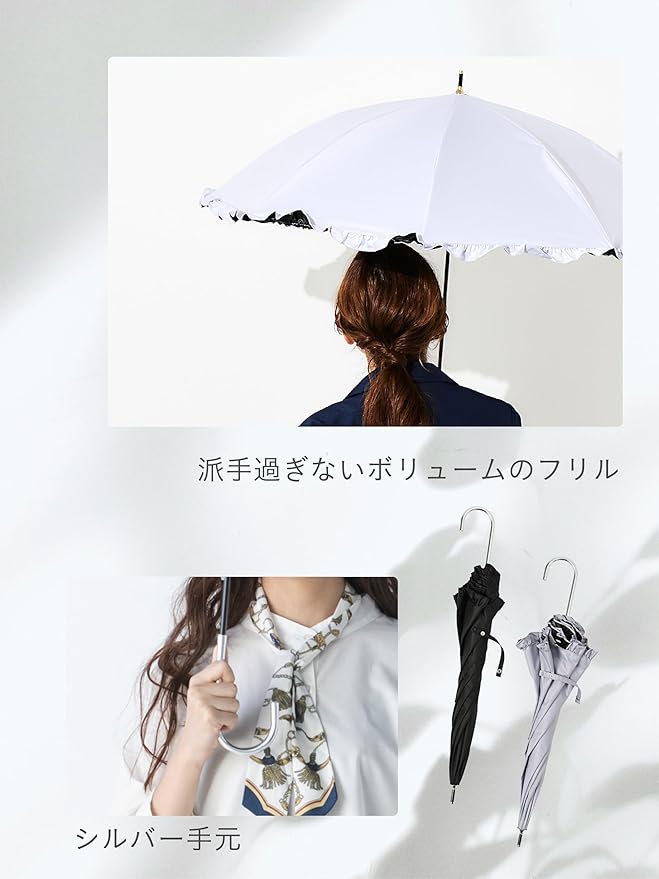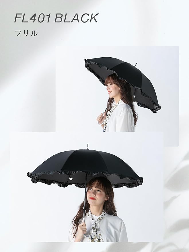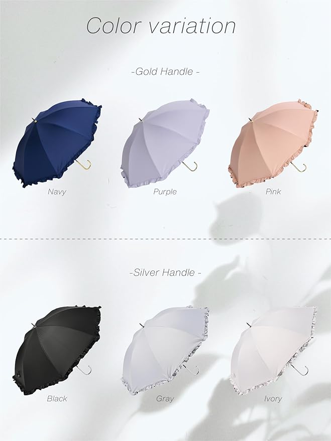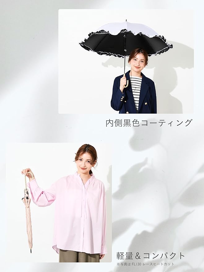 【毎日使える晴雨兼用】 この製品は、紫外線遮蔽・遮光・遮熱効果を目的とした日傘です。また、生地にはPUコーティングを施しているため防水効果が見込め、雨の日にもご使用いただけます。