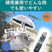 晴雨兼用でどんな時でも使いやすいです。上面がシルバーコーティングしてあるので夏の強い紫外線をカットしてくれます。また、裏面は揮発性のあるポリエステルで雨の対策もばっちりです。