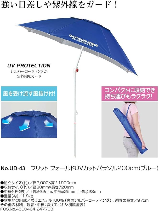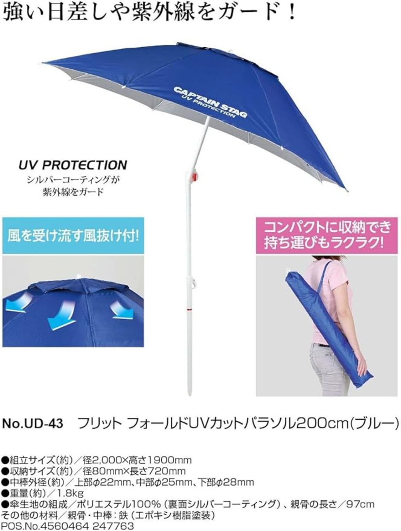 限定商品限定商品 パラソル フリット フォールド UVカット パラソル 200cm ブルー UD-43