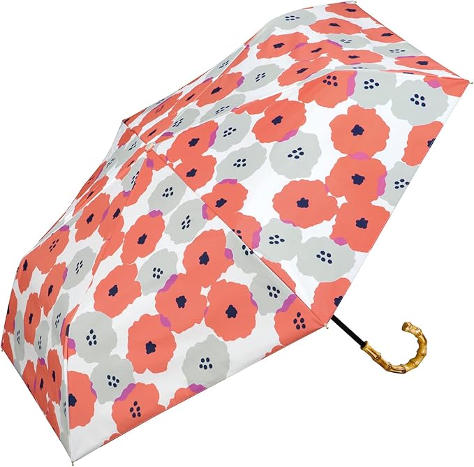 Wpc. 日傘 折りたたみ傘 遮光パターンズプリント ミニ ピオニ レッド《遮光率100%・UVカット率100%・UPF50+・晴雨兼用》 55cm レディース バンブー 持ち手 通勤 通学 おしゃれ 可愛い 女性 PPAM-9085-102