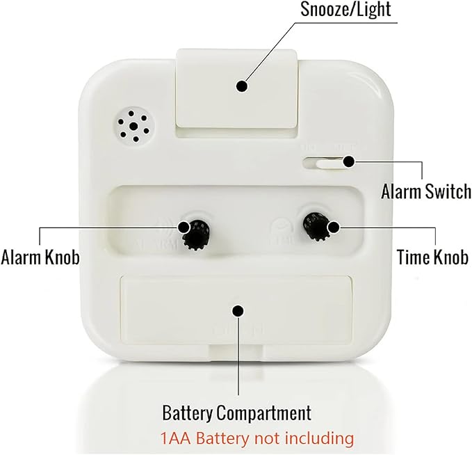 操作性: アラーム設定用ノブと時刻調整ノブを備え、単3電池1本で動作します(電池別売)