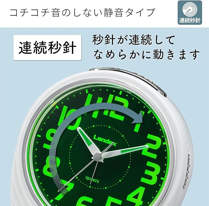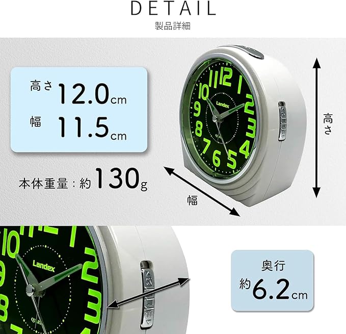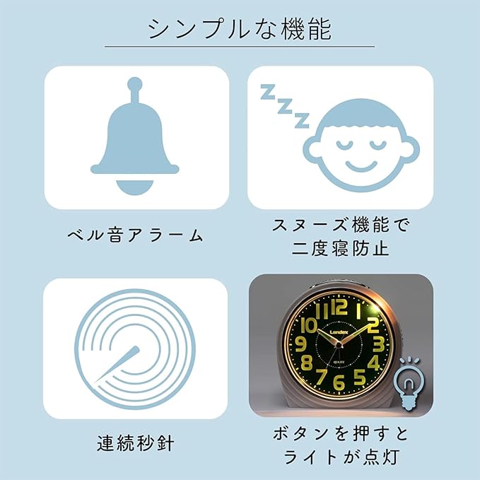 ランデックス(Landex) 目覚まし時計 アナログ ベルイチ 静音 連続秒針 ライト スヌーズ 機能付き 白 YT5300WH