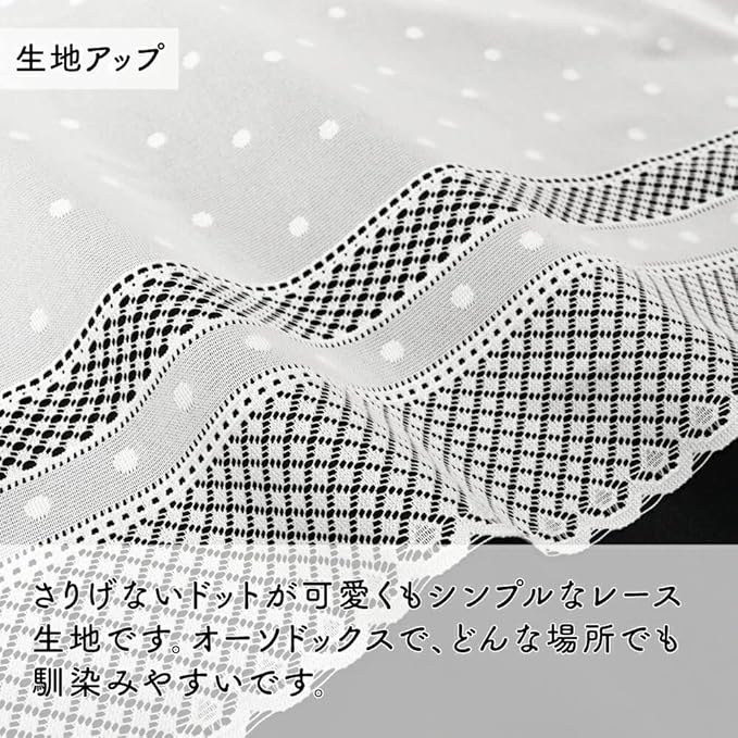 【生地】素材:ポリエステル100% 薄めの、透け感のあるレース生地です。 生産国:日本製