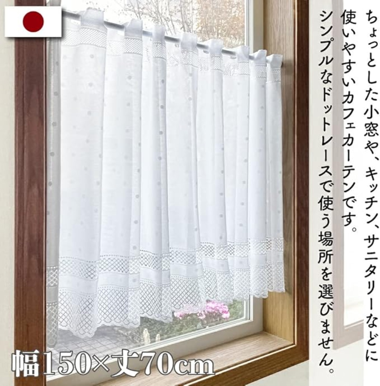 のれん工房 カフェカーテン 小窓用 シンプル レース おしゃれ 幅150 丈70cm キッチン サニタリー ドット 10635