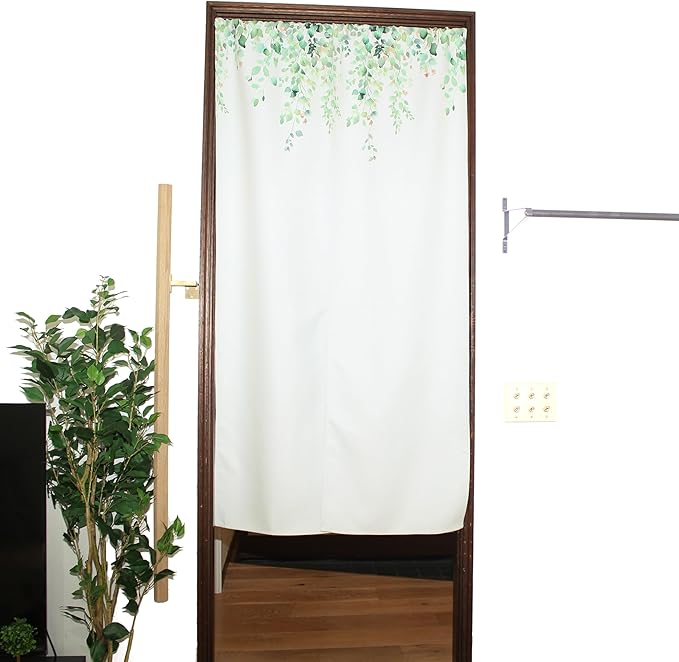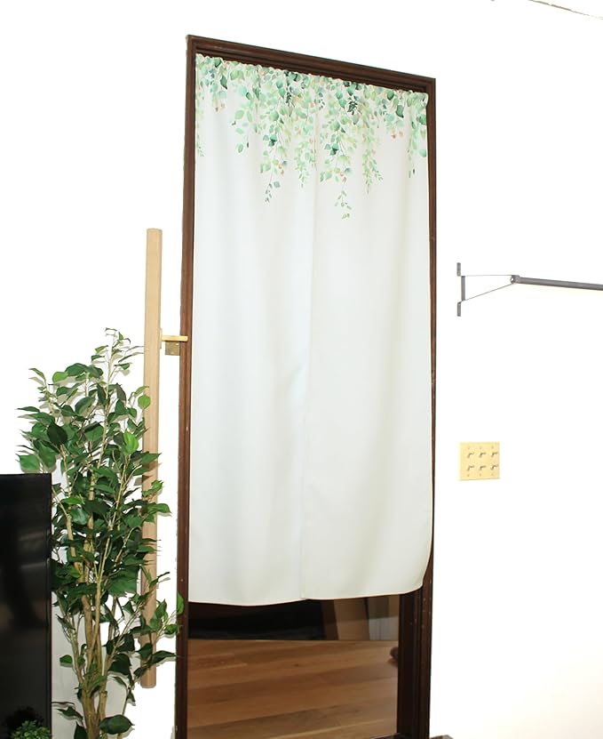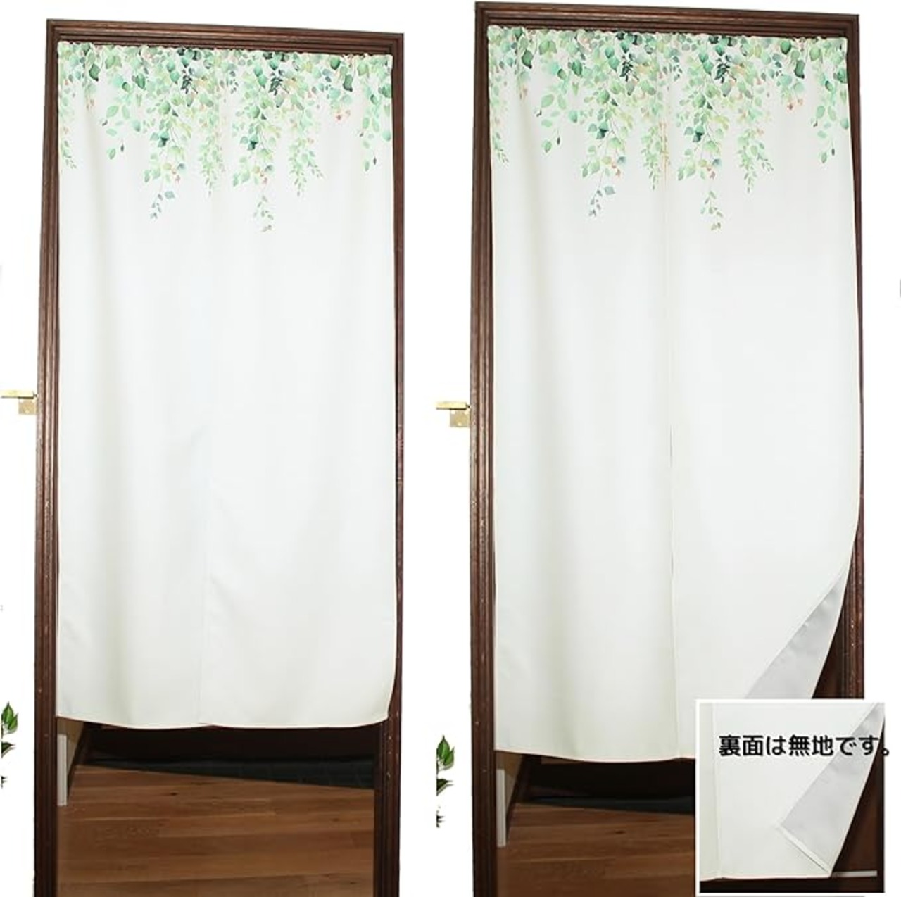 cloth shop 布や のれん 暖簾 UV 北欧 おしゃれ [ミックスグリーン・遮光エバリーフ柄プリント 幅85cm x丈150㎝]