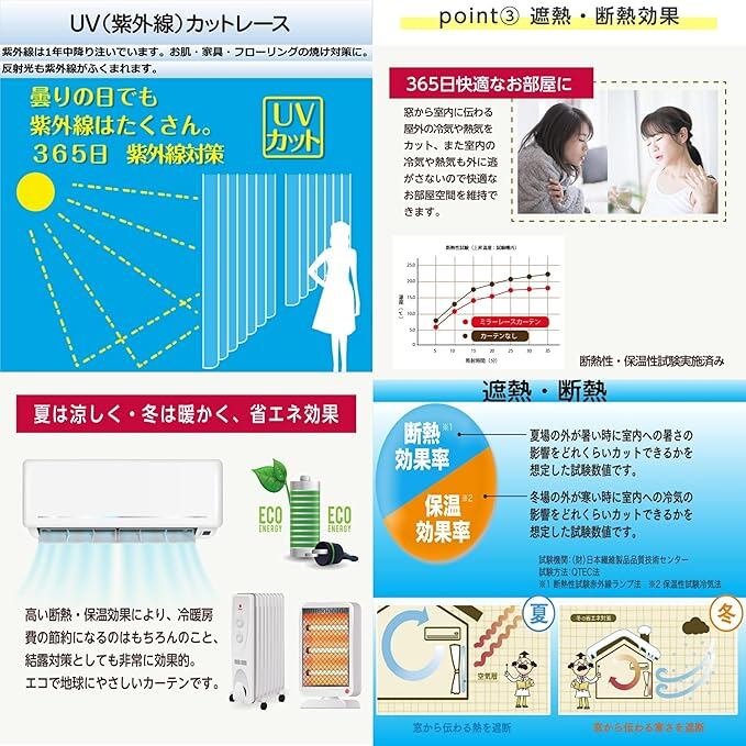 このカーテンはポリエステルでできており、火気から遠ざけてください。また、遮光性がありますので、火災の危険性があることをご注意ください。