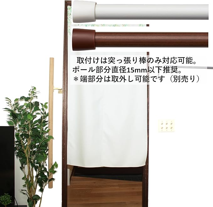 【取付方法】竿通し部分の直径は幅約4.0cmです。 両端の直径22㎜以下の突っ張り棒をご使用ください(別売り)