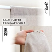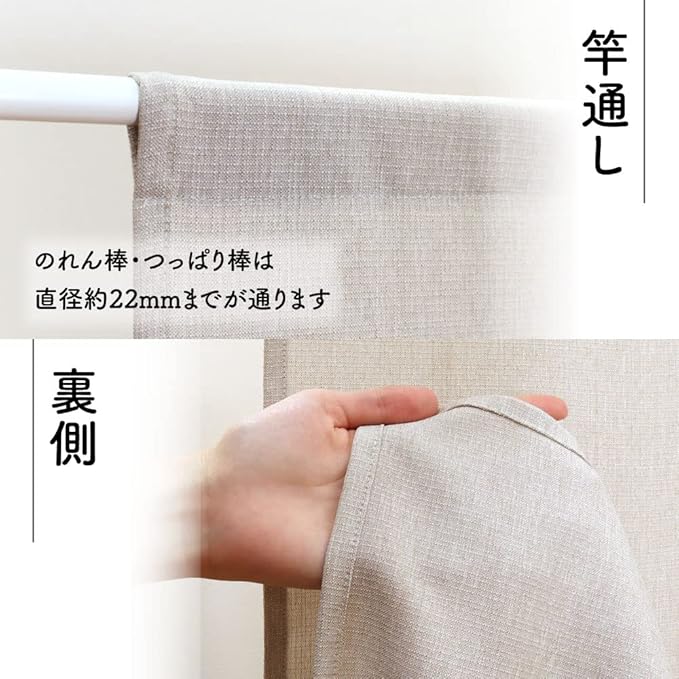 直径約2.2cmまでのポール(棒)を通すことができます。(※つっぱり棒をご使用の場合は、両端のキャップの太さも考慮してください。キャップが取り外せるものもございます。) 程よく光を通しますが透けにくいです。(光っている電気や、明るい窓の形がわかります。)