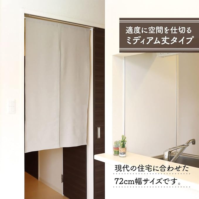 【ポイント】ありそうでなかなか見つからない、シンプルな無地!手触りの良い柔らかい生地で透けにくく、幅は現代の住宅のサイズに合わせた72cmでお部屋に合わせやすいです。飽きのこないシンプルな無地ののれんなので、場所を選ばずにお使いいただけます。飲食店等の商業施設にもよく合うのれんです。