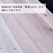 東濃ひのきから水蒸気蒸留法によって抽出したオイルは、ひのきの香りや成分を余すことなくたっぷりと含んでいます。