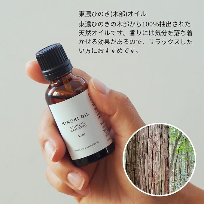 ひのきオイル(木部) 30ml 東濃ひのきの木部から抽出した100%天然のヒノキオイルアロマ、お部屋やお車の芳香剤、お風呂の入浴剤にhinoki oil 桧油