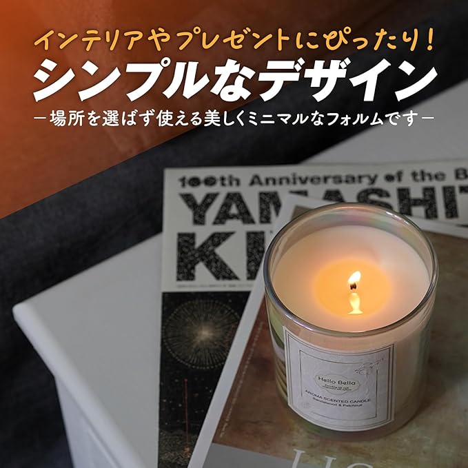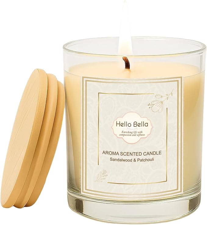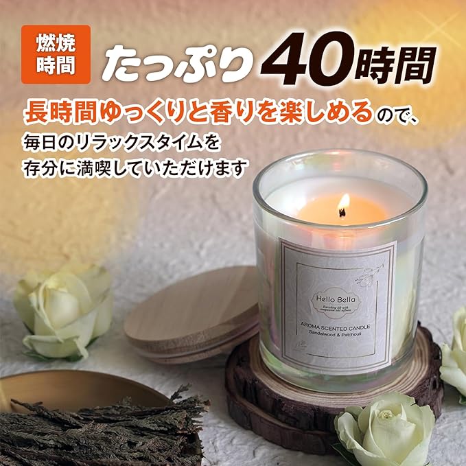 Hello Bella アロマキャンドル サンダルウッド&パチュリー 240g 天然素材 ソイワックス ギフト プレゼント (パチュリー)