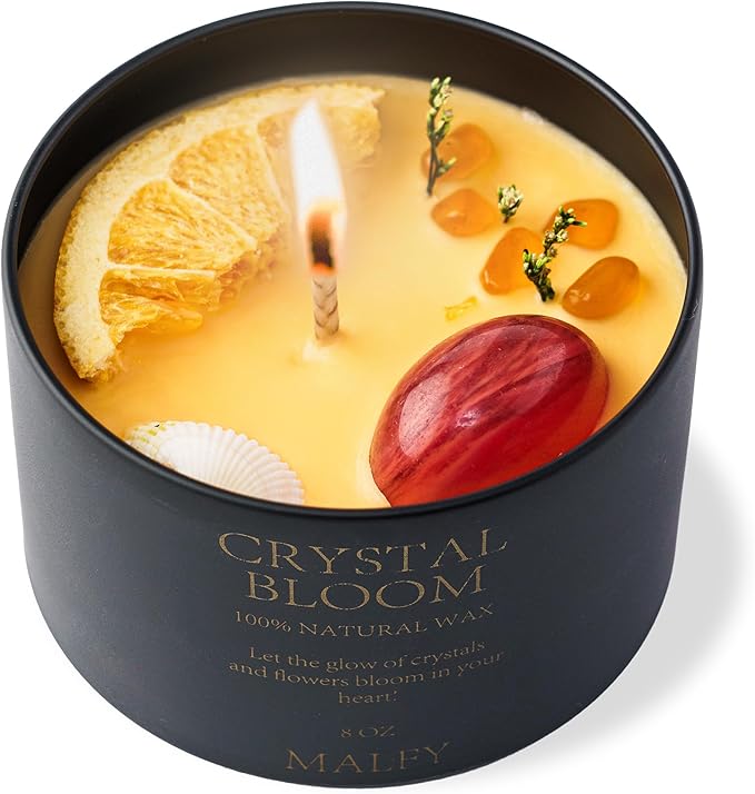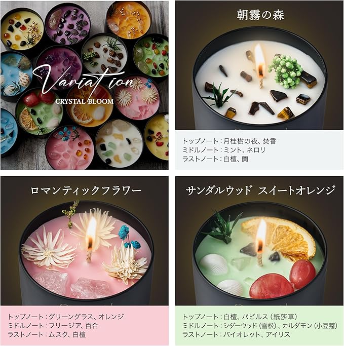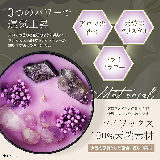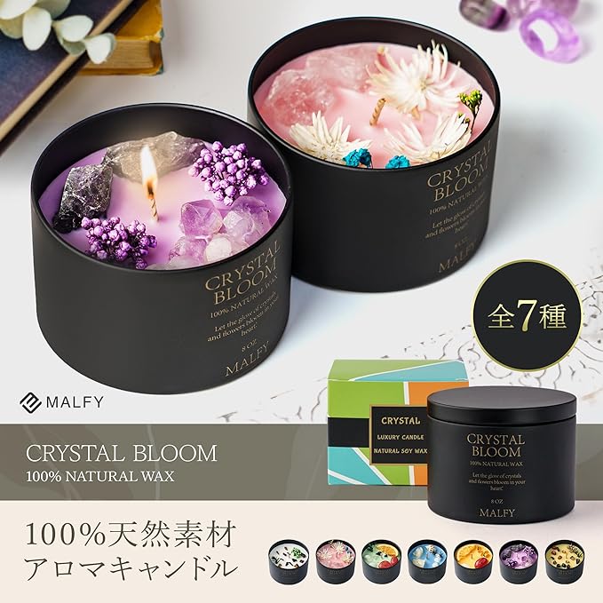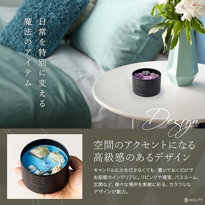 [MALFY] (癒し・浄化・自然)見た目も香りも、心を癒すアートアロマキャンドル 8オンス クリスタル ドライフラワー ソイワックス 【Crystal Bloom】 (ネロリベルガモット)