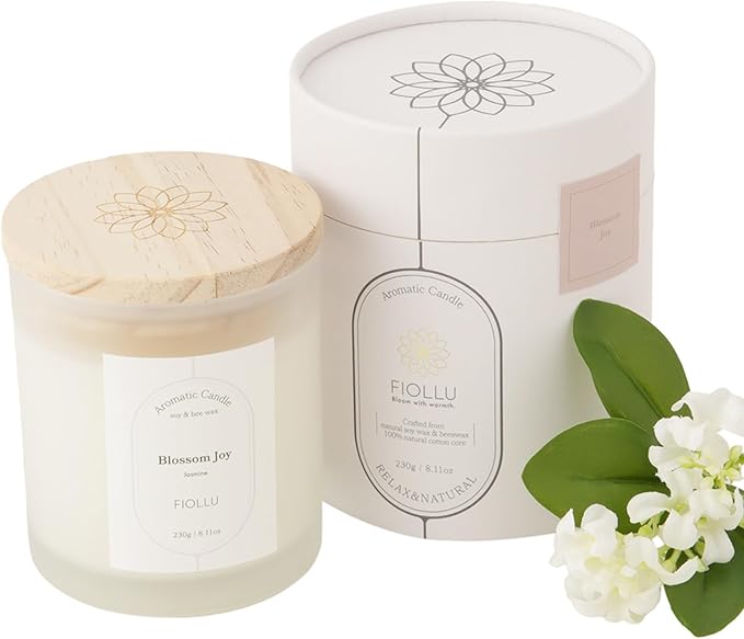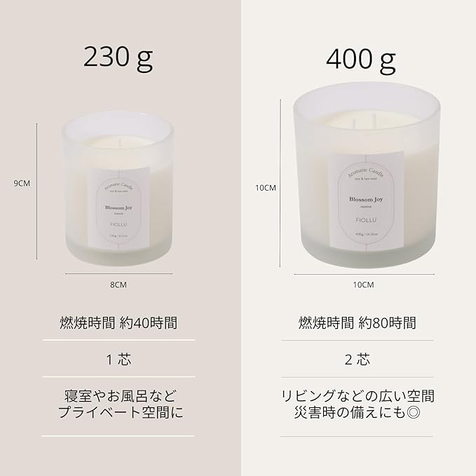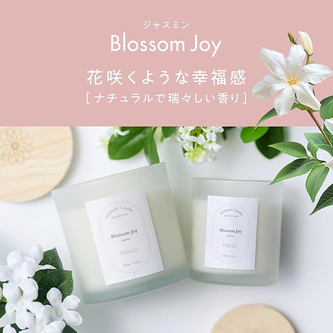 アロマキャンドル 燃焼約40時間 (ジャスミン)【アロマセラピスト監修】天然ソイワックス&蜜蝋 癒し 無煙綿芯230g ギフト Blossom Joy