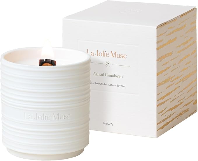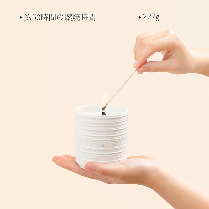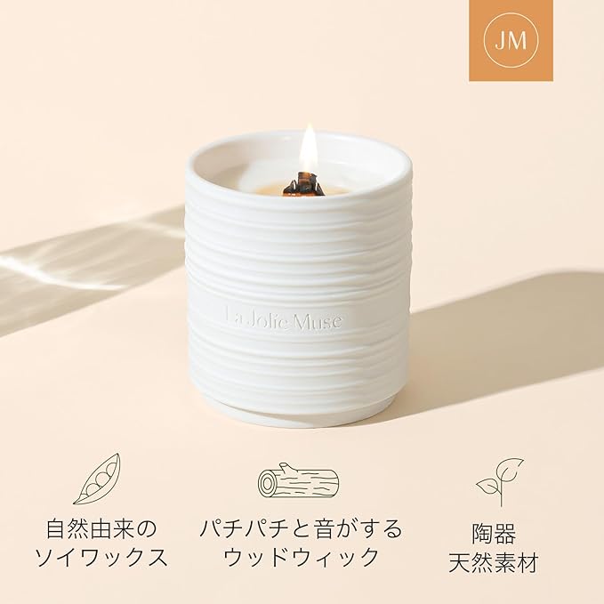 LA JOLIE MUSE アロマキャンドル サンダルウッドとパチョリの香り 木芯 天然ソイワックス 陶器缶 220g 燃焼時間50時間 女性向け ギフト
