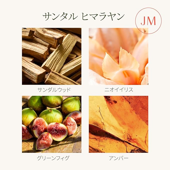 温もりのサンダルウッドの香り-ストレスから解放される落ち着きの香り。豊かな香りでスパやお家でのリラックスにぴったり。