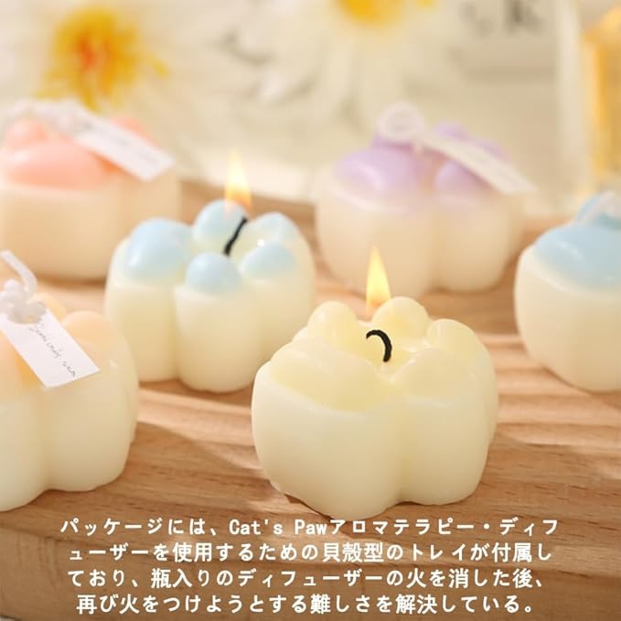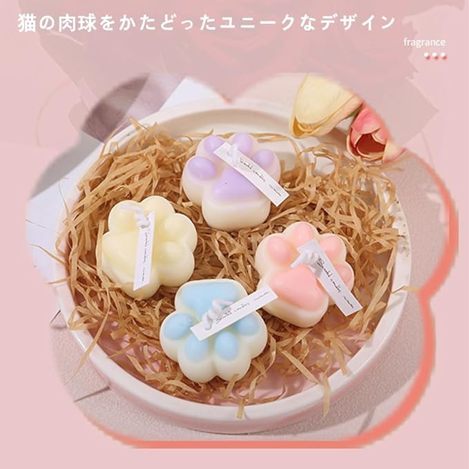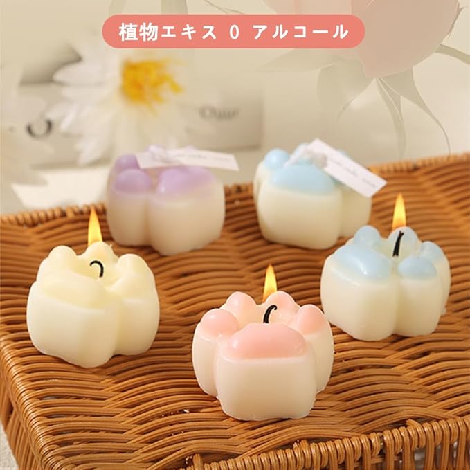 アロマキャンドル 天然ソイワックス 猫の足型 5個セット 燃焼時間24時間 プレゼント 天然素材 バレンタイン 母の日(4つの香り)