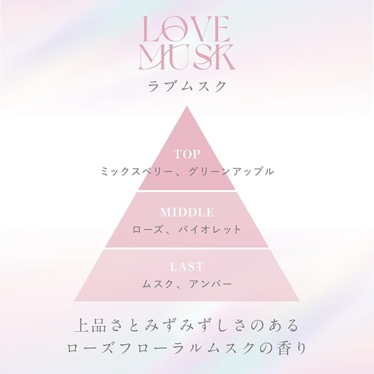 ●ラブムスク:上品さとみずみずしさのあるローズフローラルムスクの香り