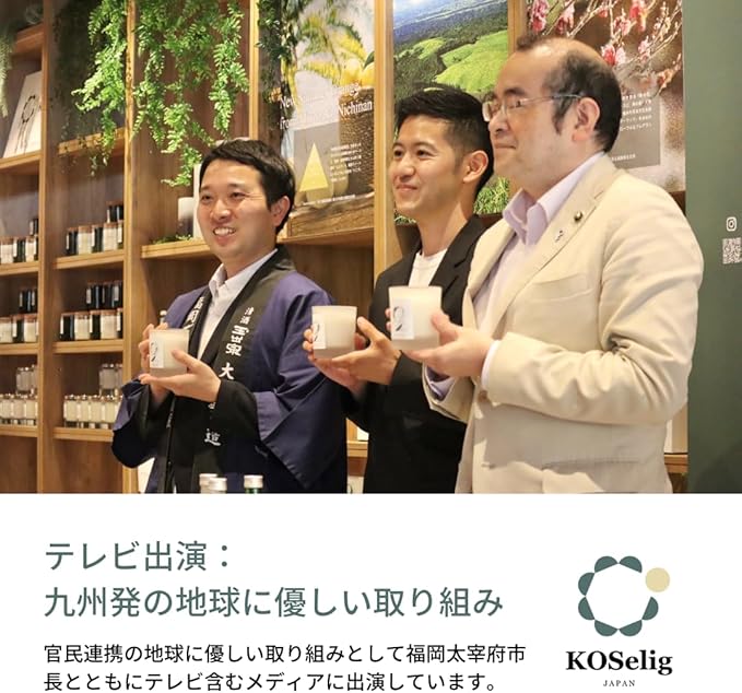 3)Japanese Craftsmanship:日本・九州の職人が作るフレグランス 「まごころを届けたい」という想いと、「環境に優しいものづくりを追求したい」という想いから、 製作から梱包など皆様の手元に届くまでの全ての工程をひとつひとつ職人の手で行っています。