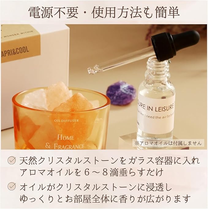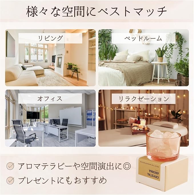 ✅ 【使用方法】エッセンシャルオイルを天然クリスタルストーンに数滴垂らすだけで、長時間香りを楽しめます