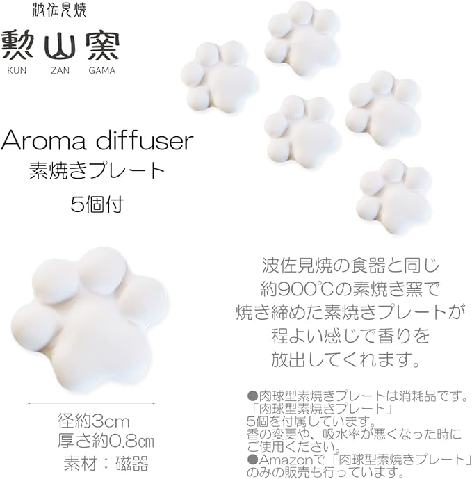 内容:アロマディフューザー 1個、付属:肉球型の素焼きアロマストーン5個 、※アロマオイルは付属されていません。