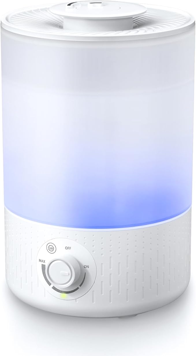 【UVライト除菌・アロマ対応加湿器】UVライトは抗菌機能があり、UVボタンを押すとライトが点灯し、水中の細菌を99%除去します。この加湿器は清潔なミストを放出できます。水溶性のアロマオイルにも対応しており、お好みのアロマオイルをタンクに入れることで部屋全体に心地よい香りが広がります。(注意:次亜塩素酸水を使用する場合は希釈してください。50ppm以下の濃度が推奨されています)