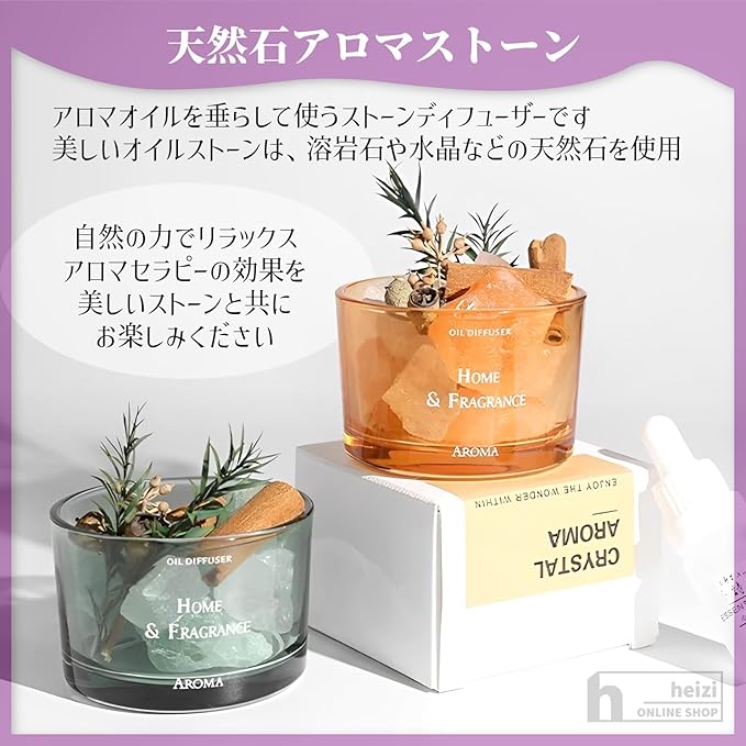✅【天然石が香りを届けるアロマストーン】溶岩石や水晶など自然の力を活かしたディフューザー。電気や火を使わず安心してアロマを楽しめます。