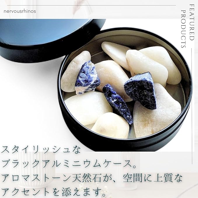 おしゃれなblackのアルミケース 3セットに天然石のアロマストーンのセットです。 アロマストーンとしてご使用されないお客様にはおすすめしておりませんのでご注意ください。
