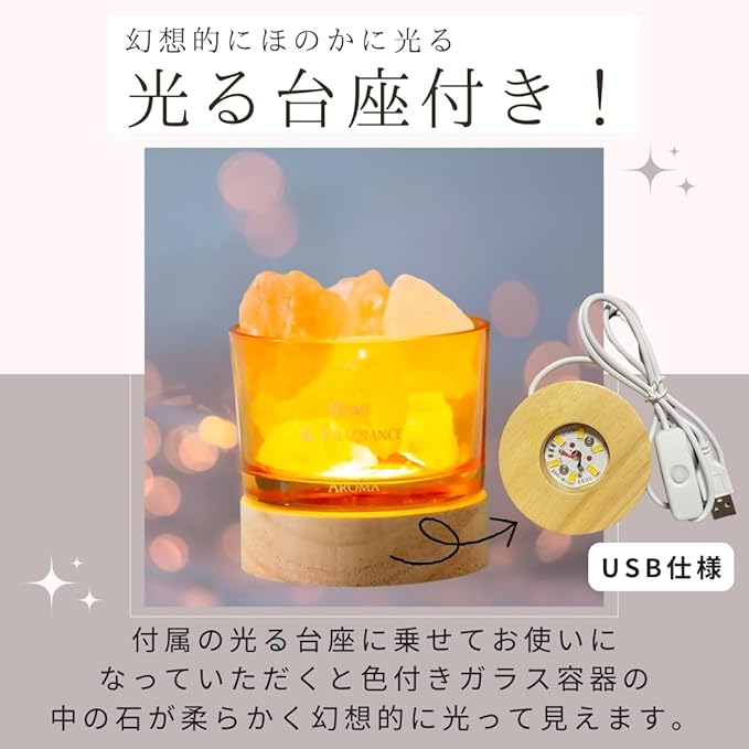 Sweet Plus アロマストーン ストーンディフューザー 天然石 アロマオイル エッセンシャルオイル オイルストーン グラス ライト 光る台座 (オレンジ/光る台座)