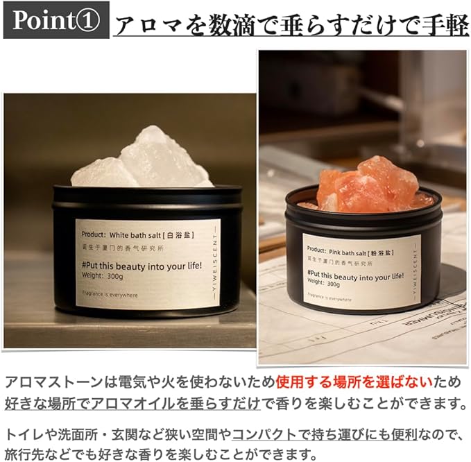 【電気や火を使わないので手軽で安全】電気や火を使う必要がなく、アロマオイルを石に直接垂らすだけでOK。石に染み込んだ香りが自然に気化して、穏やかに香ります。