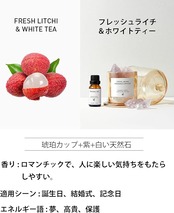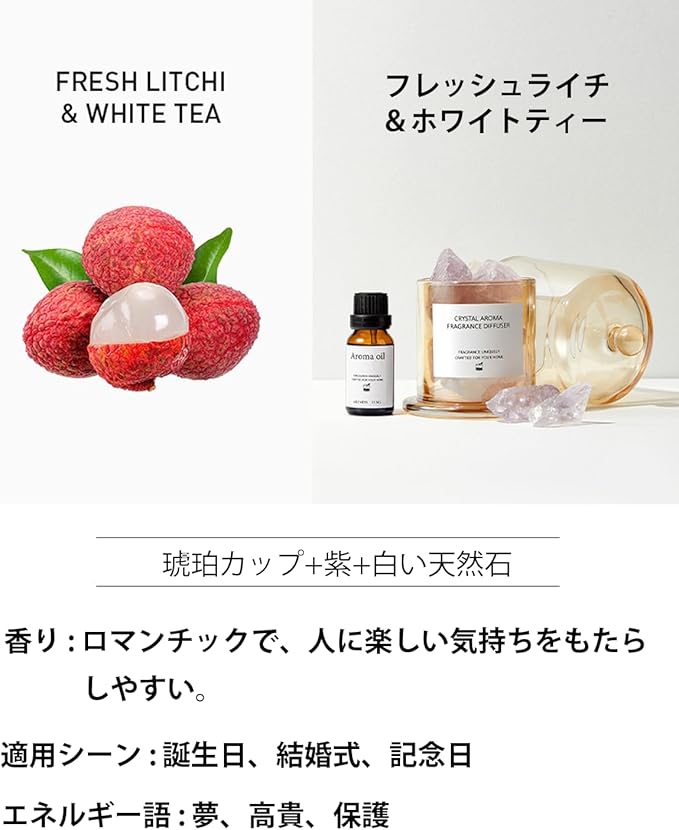 アロマストーンセット 【アロマストーン300g+エッセンシャルオイル15ml+蓋付き半透明ガラス容器+お揃いの巾着袋とギフトボックス】 ストーンディフューザー アロマディフューザー アロマオイル 天然石 パワーストーン クリスタル フレグランスストーン お祝い/バレンタインデー/誕生日/ギフト/プレゼント/贈り物に適用 (フレッシュライチ&ホワイトティー)