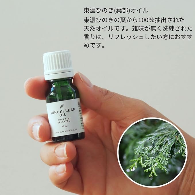 ひのきオイル(葉部) 10ml (希少なひのきの「葉」から抽出した100%天然のヒノキ葉オイル)アロマ、お部屋やお車の芳香剤、お風呂の入浴剤にhinoki oil 桧葉油