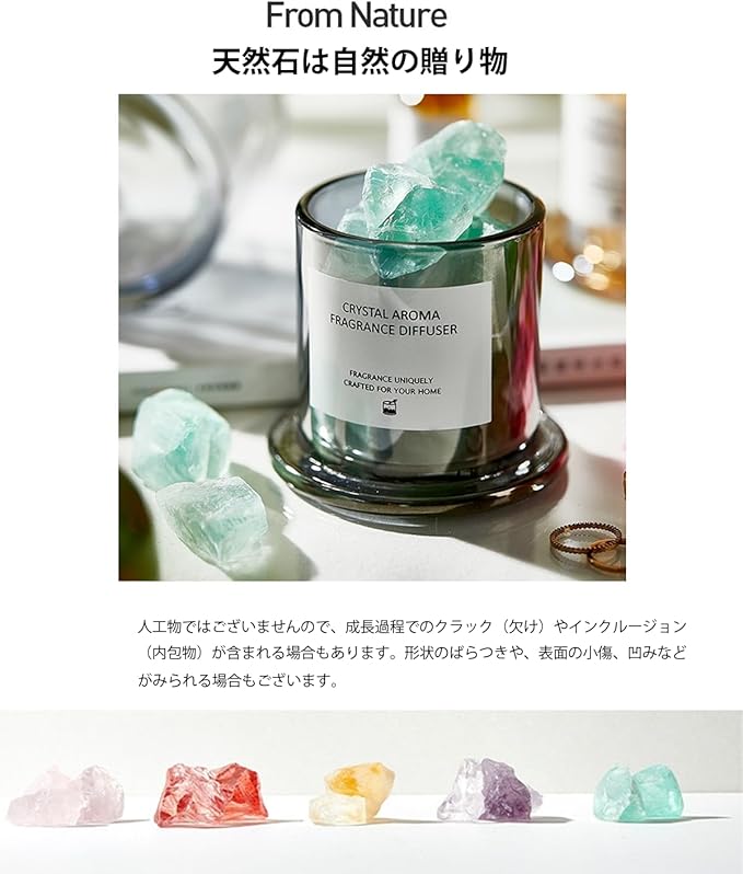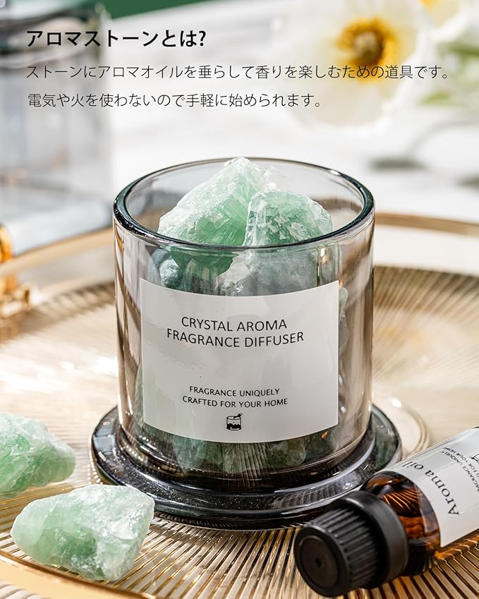 【天然石・ストーンディフューザー】エッセンシャルオイルをストーンに数滴垂らすだけで、天然石からふわっと広がる優しい香りが、お部屋全体に広がります。濃い香りが好きお好みの場合は、1回に8 ~ 12滴のエッセンシャルオイルを追加し、軽い香りがお好みの場合は、1回に5 ~ 8滴のエッセンシャルオイルを追加します。天然鉱物のアロマストーンはオイルを吸収し、熱なしでゆっくりと香りを拡散させます。香り立ちは穏やかなので、強い香りが苦手な方や、場所を問わずに設置でき、特にトイレ、洗面所、玄関などの狭くて目に留まる場所がおすすめです。