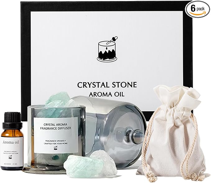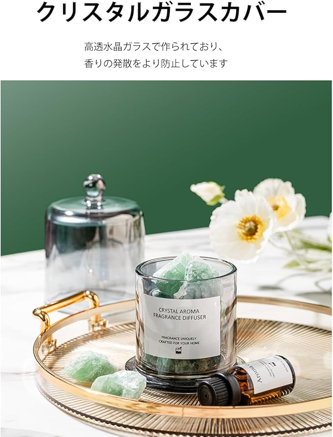 アロマストーンセット 【アロマストーン300g+エッセンシャルオイル15ml+蓋付き半透明ガラス容器+お揃いの巾着袋とギフトボックス】 ストーンディフューザー アロマディフューザー アロマオイル 天然石 パワーストーン クリスタル フレグランスストーン お祝い/バレンタインデー/誕生日/ギフト/プレゼント/贈り物に適用(露&苔)