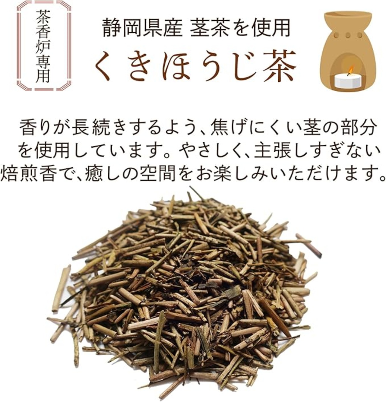 内容:国産茶香炉専用茶葉 くきほうじ…50g 1袋
