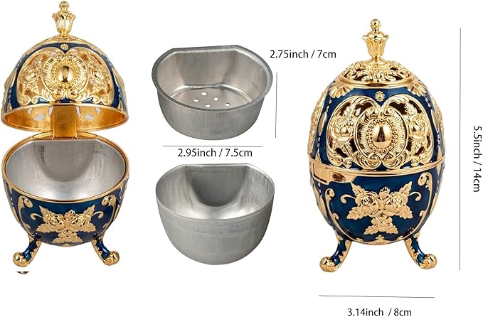 香炉本体のサイズ:8*8*14cm 受け皿のサイズ:7.5*7cm 重量:294g 香炉x1;灰皿x1。 カラー:ダークブルー/赤銅色