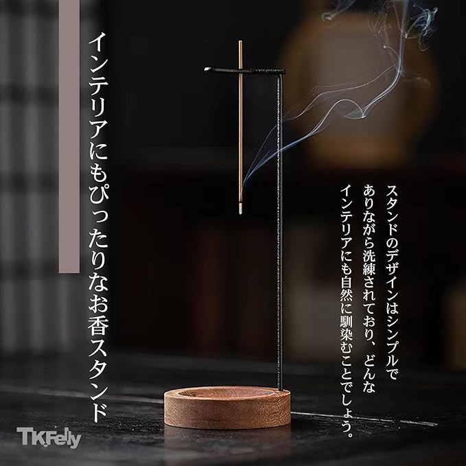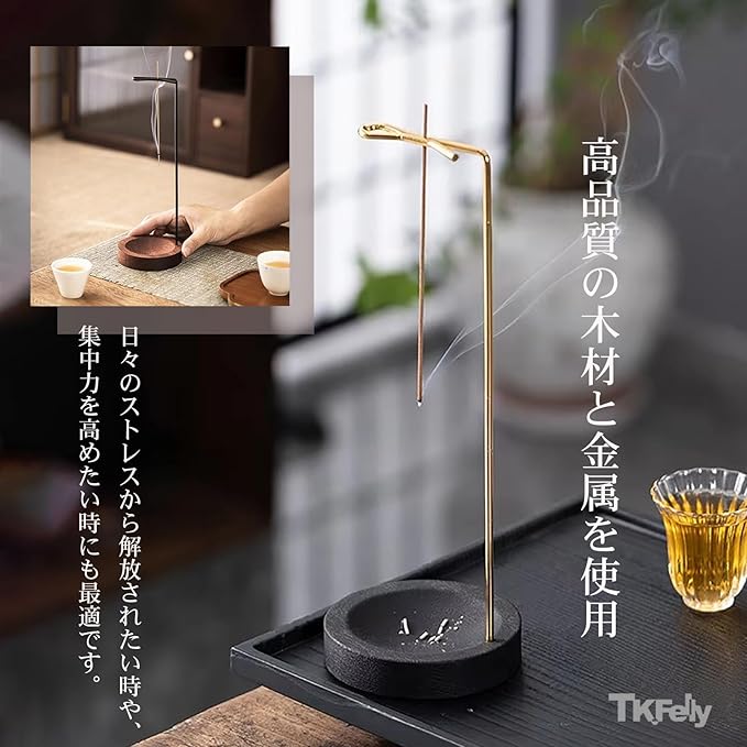 【耐久性◎】素材には高品質の木材と金属を使用しており、耐久性も兼ね備えています。吊り下げることで省スペースにもなり、部屋をすっきりと見せることができます。このお香スタンドは、日常のストレスから解放されたいときや、特別な時間を演出したいときに最適なアイテムです。自分自身や大切な人へのギフトとしても、きっと喜ばれることでしょう。
