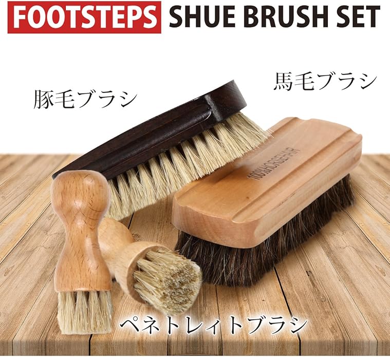 FOOTSTEPS 靴磨きセット 馬毛ブラシ 豚毛ブラシ ペネトレイトブラシ 2本