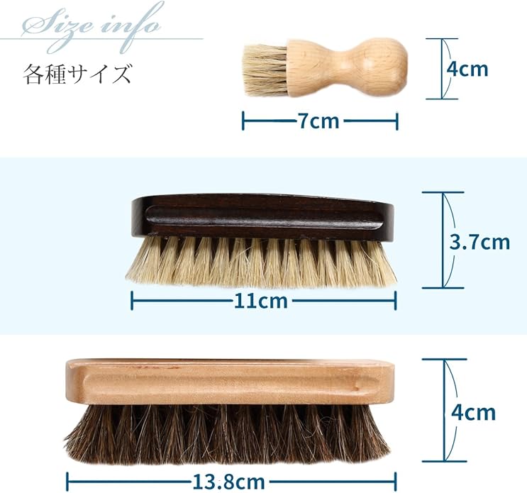 【セット内容】馬毛ブラシ、豚毛ブラシ、ペネトレィトブラシ 2本、収納用麻袋